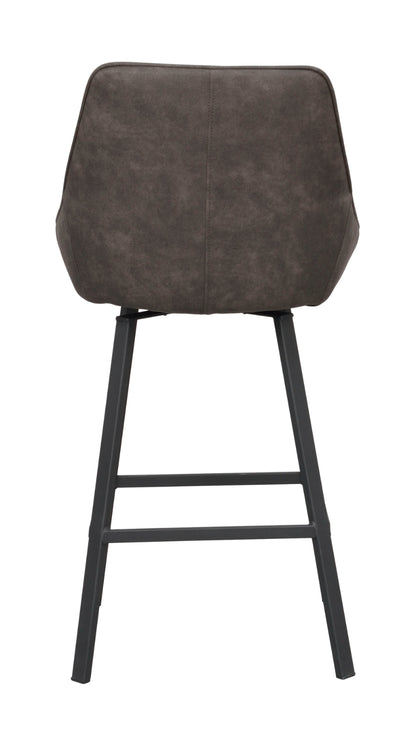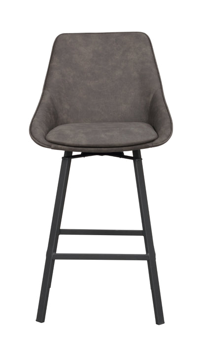 Es verfügt über einen um 360 Grad drehbaren Sockel und ist mit elegantem graubeige Stoff gepolstert, perfekt für moderne Küchen- oder Bareinrichtungen.