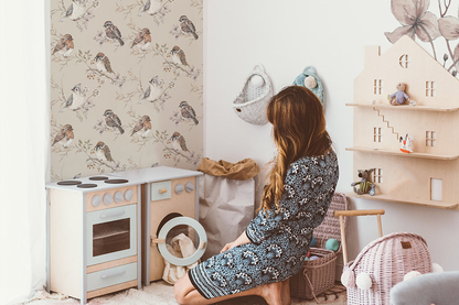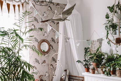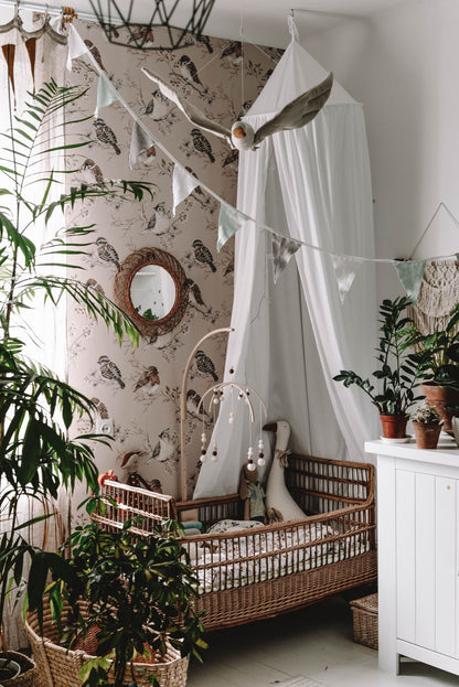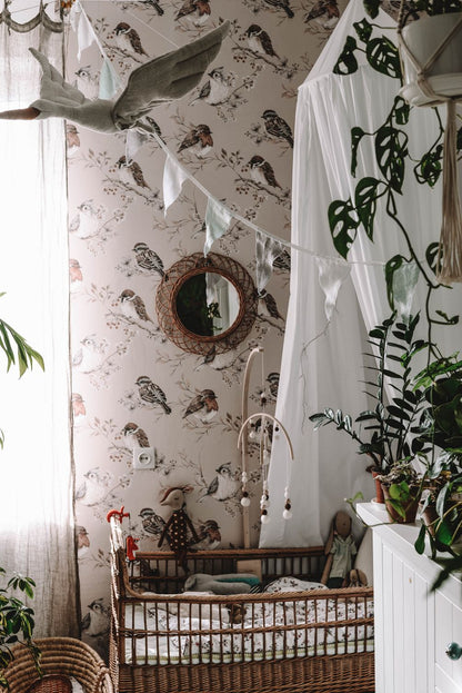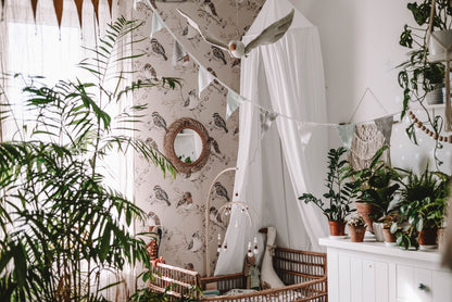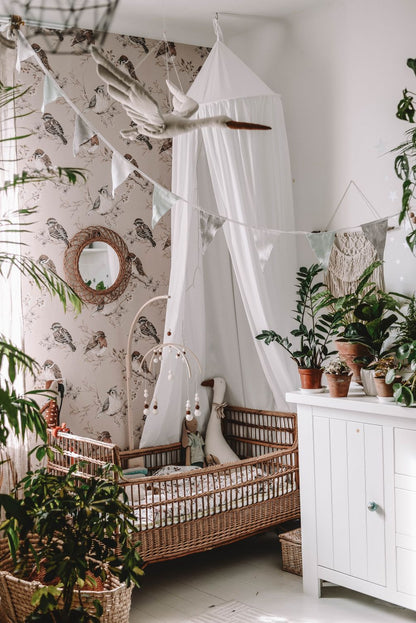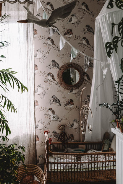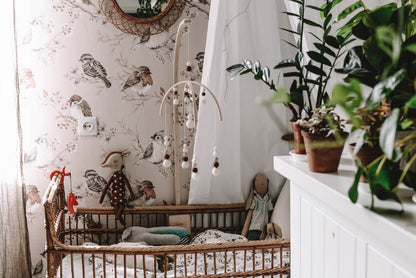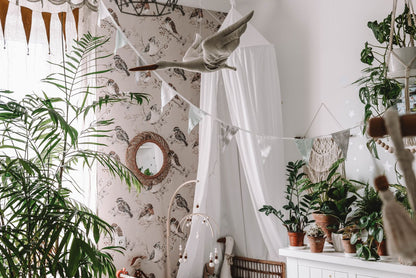Die Tapete „Birds Green“ ist die beliebte Wahl für Babyzimmer.