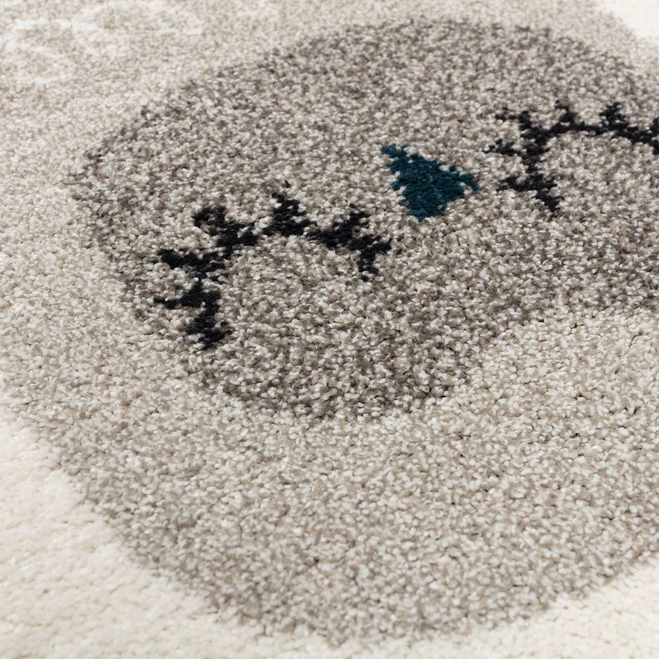 Kinderteppich in einem warmen Cremeton mit Eulenmotiv.