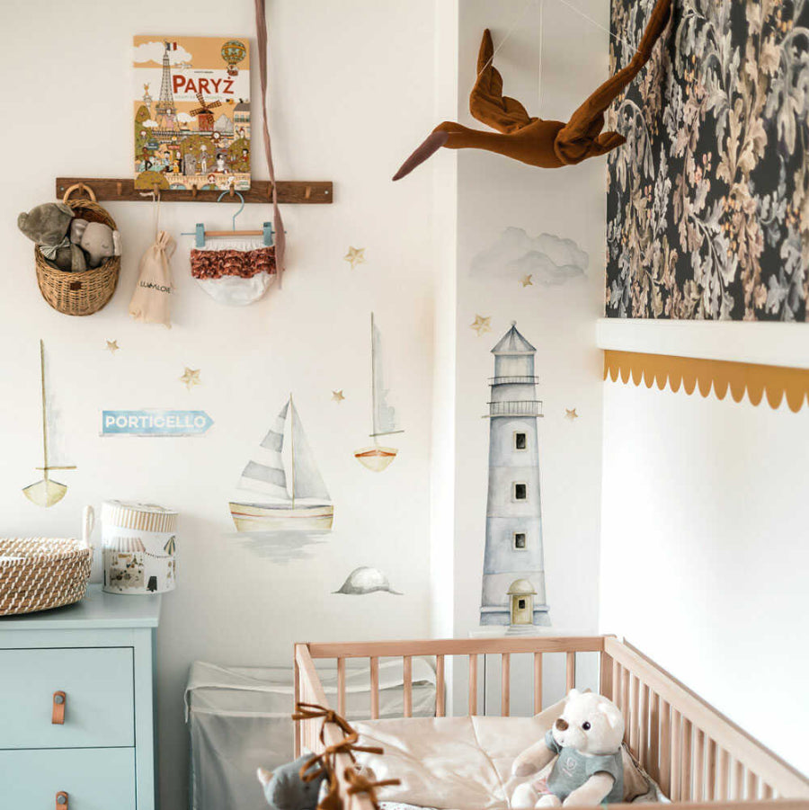 Als wir es auf unsere Website stellten, waren wir sicher, dass es eine typische Jungenzimmerdekoration sein würde. Wie sich herausstellte, lieben es auch Mädchen. Besonders mit einem Satz goldener Sterne, die wir darauf abgestimmt haben. Dieses Set reicht aus, um eine schöne Babyecke und eine Wand über der Wiege zu dekorieren.