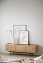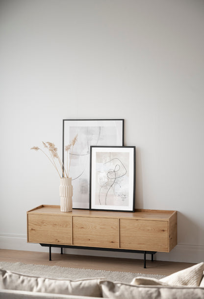 Mueble de TV Brewerton en roble salvaje lacado. Todas las puertas del mueble se abren con sistema push-open y todo el frente proviene de la misma tabla del árbol, lo que le da una impresión general elegante. Los tres estantes móviles brindan flexibilidad y opciones de almacenamiento perfectas. El mueble de TV tiene orificios para cables en la parte posterior y el mueble también se puede usar como aparador bajo.