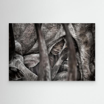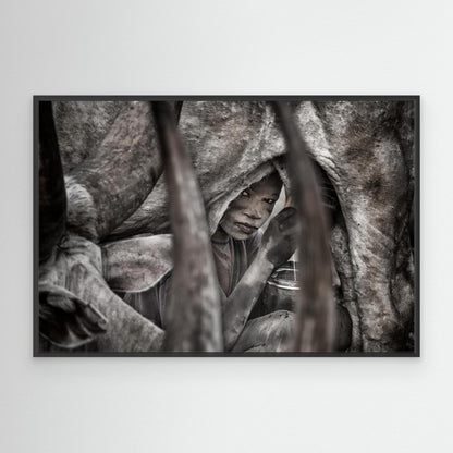 Canvas Mundari Child Milking a Cow-II - South Sudan by Joxe Inazio Kuesta Garmendia