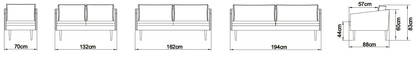 - Seat: HR foam 40 KG, sandwich construction, soft wadding on the top.