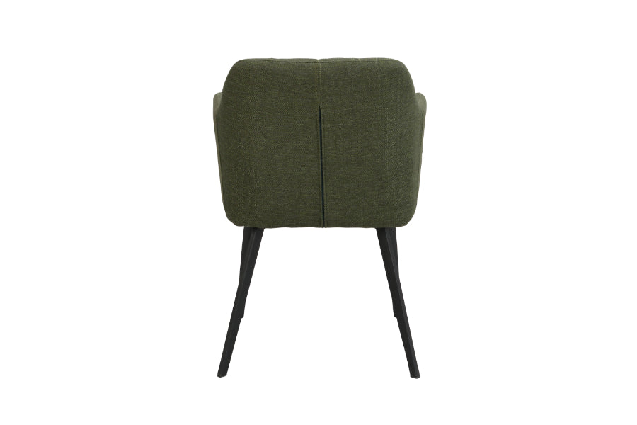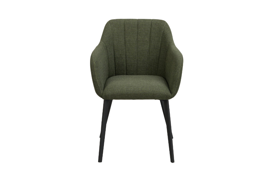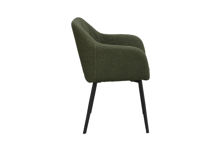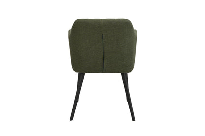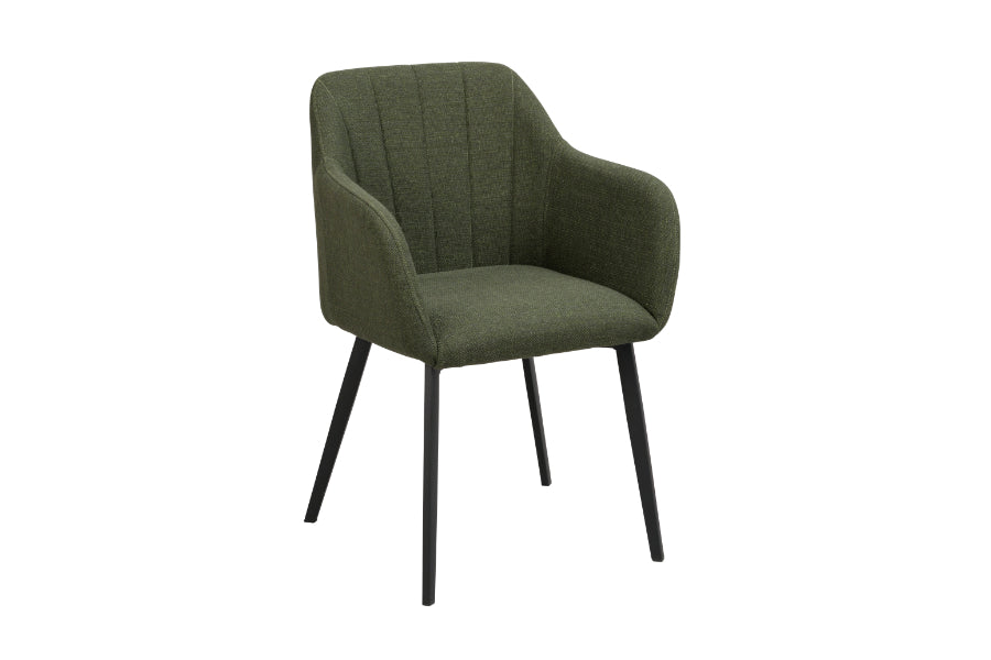 Bolton armchair is made of fabric and black metal legs. The chair has a durable coarse fabric and high seating comfort. Bolton armchair is also available with green fabric and can be used around the dining table but also as an odd chair.