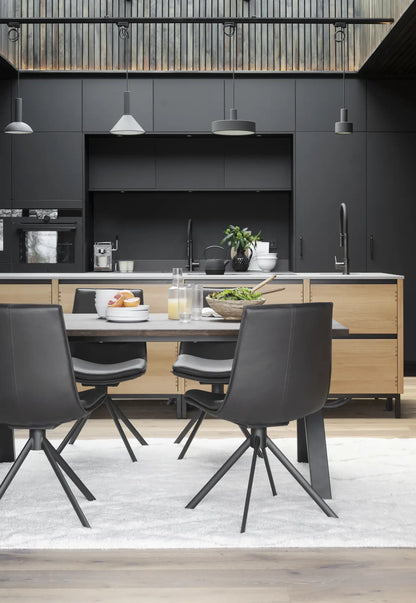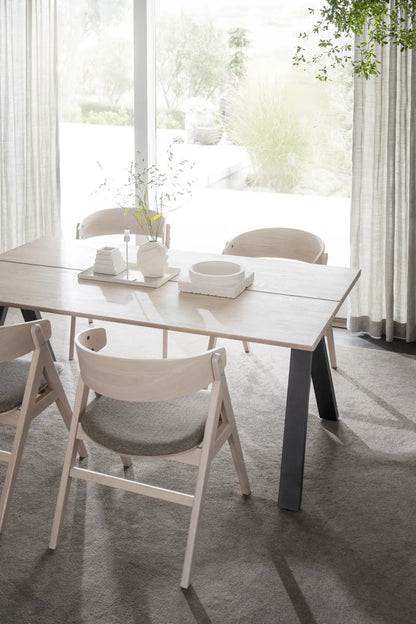 The dining table is part of the flexible Carradale series where you can design the table the way you want it by choosing between different shapes and colours on the tabletop and which type of table legs you want.