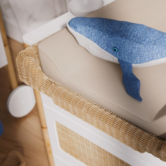 This woven rattan changing box fits perfectly securely on our chests of drawers and beds (120 cm and 140 cm) from the Marélie, Marélia, Naïa, Nami, Océane, and Océania collections.