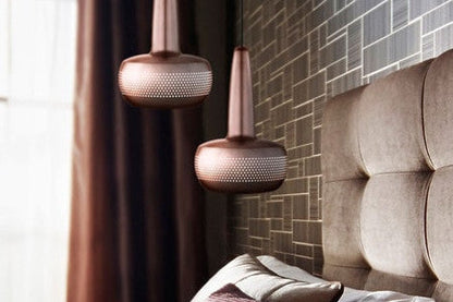 Clava is a small and stylish lampshade with retro hints. A series of small symmetric holes supplies a stunning look to the surroundings.