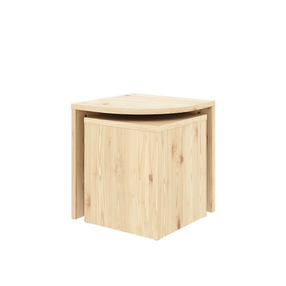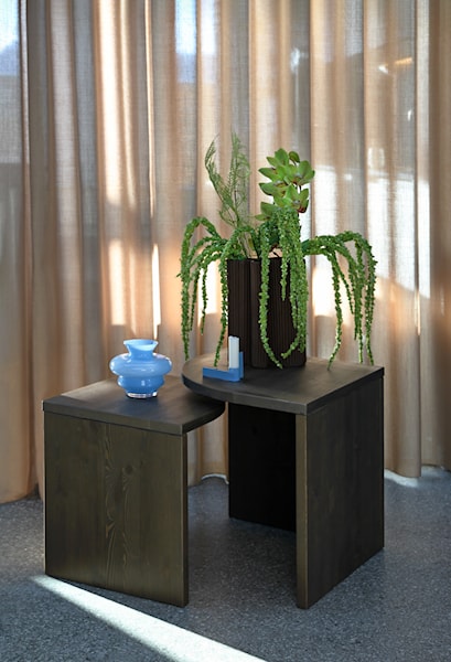 The Combine Side Table Set blends classic functionality with aesthetic versatility. The set consists of two tables in different sizes that can be used individually or together to create unique configurations. Push them together to form a square, place them in a line, or use them separately as small side tables.