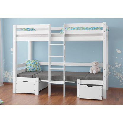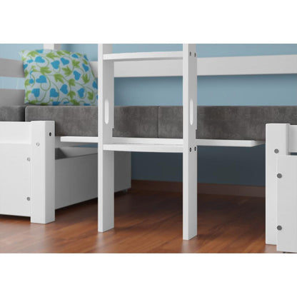 This loft bed is designed with maximum functionality in mind. The lower bed can easily be transformed into a study desk, allowing the child to utilize the convenient space for homework, reading, or creating. The bunk bed construction is solid and ensures the safety of children. The upper bed features sturdy safety rails, and a ladder or staircase facilitates access to the upper level. Safety is a priority. This solution is particularly useful in smaller bedrooms, where space-saving is important. A bunk bed with a desk utilizes bedroom space efficiently.