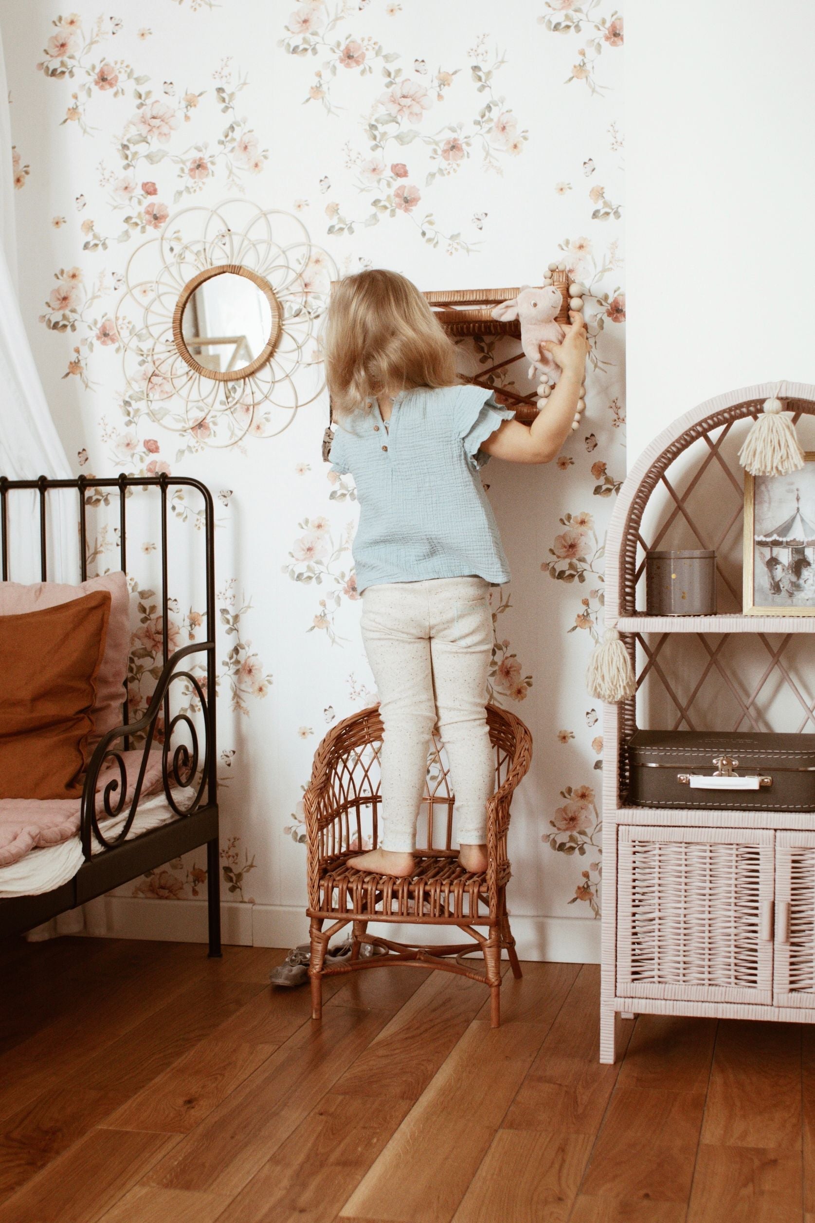 Our most popular wallpaper already from day one. It is such a delicate and graceful pattern that it suits almost every girl’s room or… her mum’s! Even thought we didn’t plan to introduce Floral Vintage wallpaper as a wallpaper for parents, we have already seen it in a few master bedrooms and living rooms. However, in our humble opinion, it still looks the best in the rooms of small princesses or… gardeners. The wallpaper is in cheerful and warm pastel colours which give give the interior a delicate vintage atmosphere when paired with matching furniture and accessories in the room.