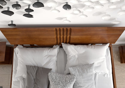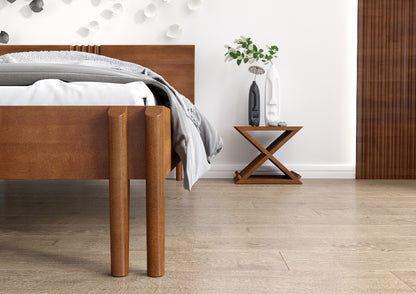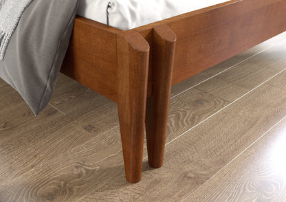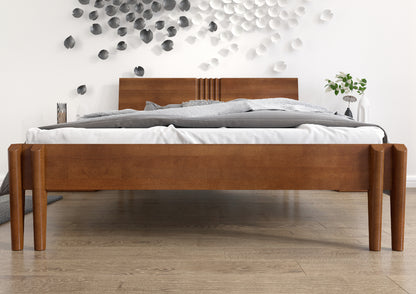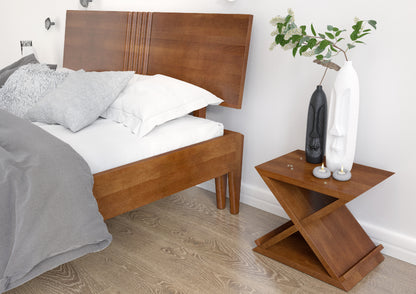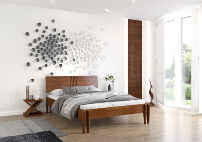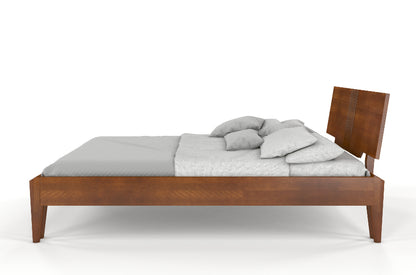 It is a timeless, solidly made and elegant bedroom bed. A simple, or even minimalist headboard, gives this bed uniqueness and timelessness, and high legs make it easier to clean under it - also using a cleaning robot.