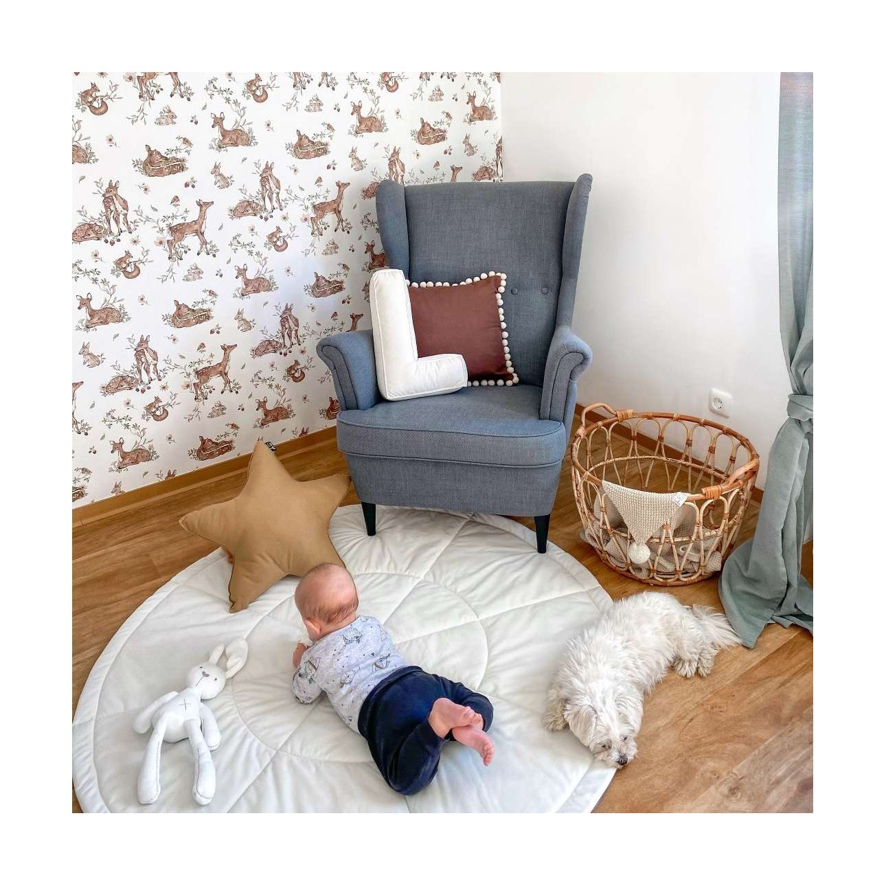 Round soft play mat for your child made of high quality materials.We are completely crazy about this product! It is multifunctional, comfortable and just beautiful! It is suitable for lying down, resting and playing.The mat has decorative stitching and is filled with high quality anti-allergic ovata. It can be single-colour or double-sided, smooth or patterned, velvet and combined with Minky fleece. Among this wealth of possibilities you will find the one that fits your child and its interior perfectly. Moreover, you can combine it with other products from the series of your choice.ATTENTION! You can order mats in another composition of fabrics, just write us a message.Size: diameter 130cm.