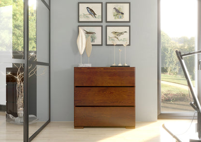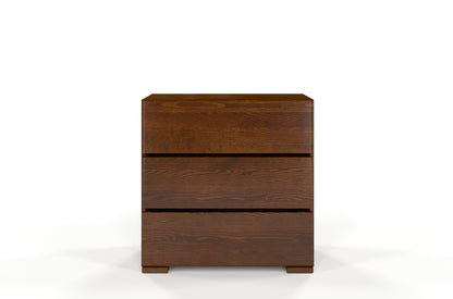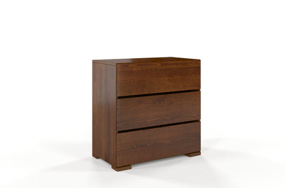 A simple, three-drawer dresser with a plain front. Thanks to its simple design this massive piece of furniture seems to be light and stable. Visby SANDEMO was designed with modern European bedrooms in mind. It looks great in large rooms as well as small, cozy rooms.