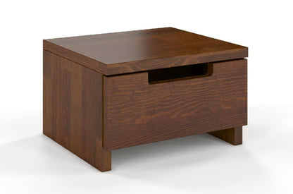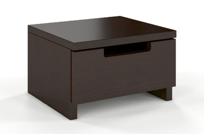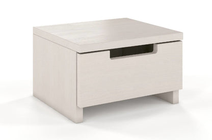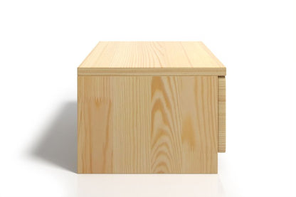 The Skandica SPECTRUM low bedside table is made of solid pine wood. This piece of furniture wins the hearts of users with its uncomplicated style and the ease of arrangement it provides. It is an exceptionally universal piece of furniture, carefully refined and charmingly beautiful at the same time. Suitable for large and small, modern and classic interiors. The Spectrum cabinet has one, but very spacious drawer in which you can successfully store everything you need to have at hand in the bedroom. Opening the drawer is simple and convenient thanks to the handle made by cutting out a fragment of the drawer front. The ease of opening and closing the drawers and their quiet operation are ensured by high-quality guides with a silent closing system and a brake. This is another advantage of the furniture, preventing the sleeping partner from being woken up by noise.