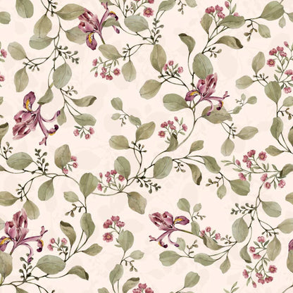 Tangled Iris is a delicate pattern in wonderful earthy colours (beige, subtle light green) with a little bit of accent – strong purple.