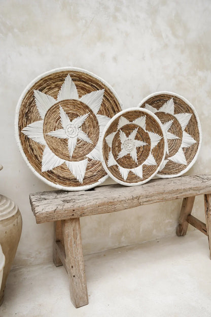 The Uluwatu Wall Basket is one of our favorite wall decor design. It is simple, but yet so full of details. It will give every room the full bohemian ambiance you are looking for. We love how the color of the banana leaves match perfectly with the white cotton. This contrast is what makes this wall hanging special.