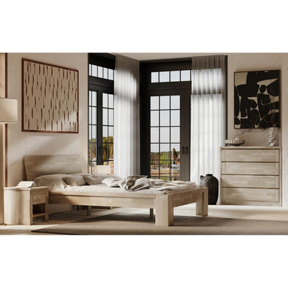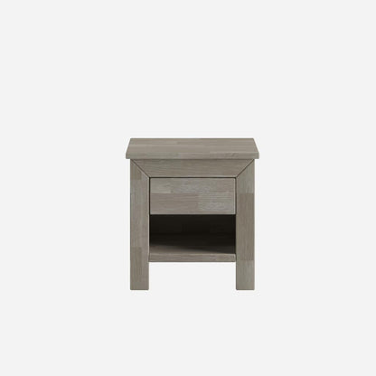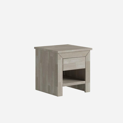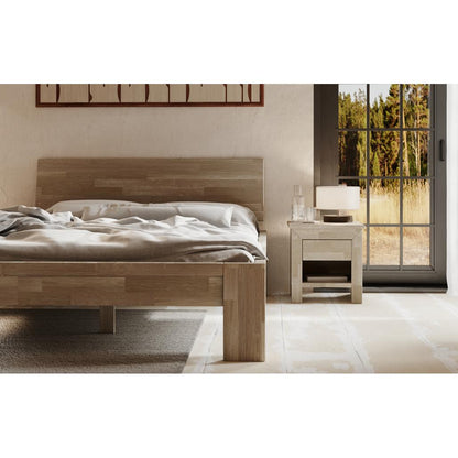 A bedside table with a single oak wood drawer is an elegant and functional solution, perfect for the bedroom. The bedside table has a simple and minimalist design that fits various interior styles. It's a piece of furniture that doesn't take up much space and blends perfectly with other bedroom decor elements.
